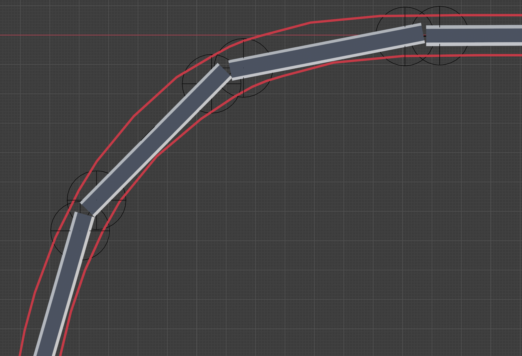 Si on trace le contour extérieur dessiné par le train lors de sa circulation dans la courbe, voici ce que l’on obtient :