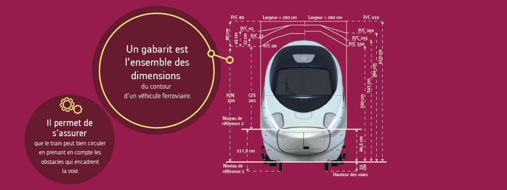 Sans entrer dans des études comparatives au millimètre, la forme générale des caisses d’un train doit répondre à une enveloppe, représentée par un contour : c’est cela, le gabarit.