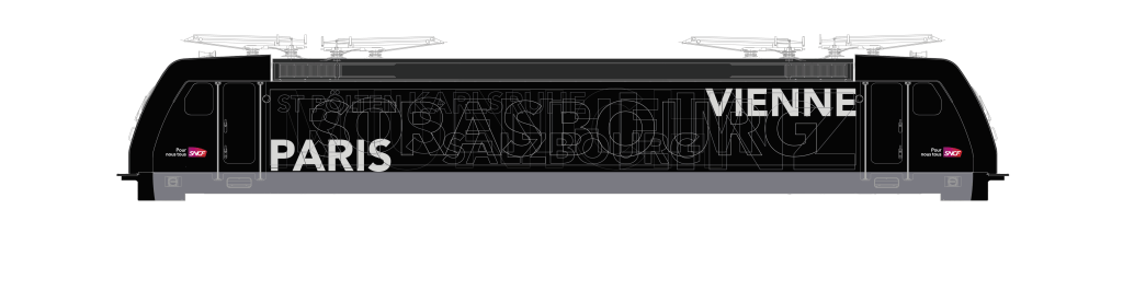 Du côté de SNCF, la symbolique est peut-être un peu plus forte. Ni le train, ni la marque NightJet, ni même la locomotive, ne lui appartiennent. La machine est louée au loueur MRCE, et aborde donc la livrée de son propriétaire, entièrement noire. Or, le fait que SNCF soit partie prenante d’un projet comme la mise en circulation d’un train comme celui-ci, est quelque chose d’assez unique et fort pour être souligné ces temps-ci. Il faut donc que visuellement, on puisse immédiatement associer SNCF à ce train, même avec une machine qui n’en porte aucune couleur de base.