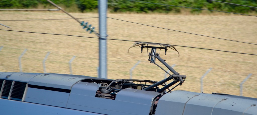 Le train continue de rouler sur son élan (« marche sur l’erre »), le temps que le pantographe se retrouve sous la nouvelle section alimentée. Là, processus inverse, on referme les disjoncteurs, puis on peut tout remettre en marche. La clim revient, les prises sont de nouveau alimentées. Cela ne dure que quelques secondes. Mais effectivement, cela revient en moyenne toutes les 8 min : c’est le temps que met un TGV à 320 km/h pour parcourir les 45 km qui séparent deux zones de transition, que l’on appelle des « Sectionnements » (ou « Coupez-courant« ).
